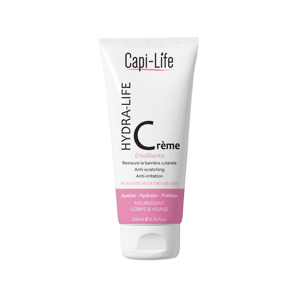 La crème hydratante émolliente CAPI-LIFE à base de Pentavitin®, provitamine B5 et extrait d’Aloe Vera offre une hydratation intense et une protection longue durée pour les peaux sèches et sensibles.