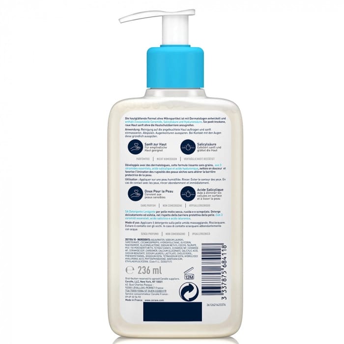 – exfolie en douceur la peau grâce à la formule enrichie en acide salicylique et aux tensio-actifs doux.