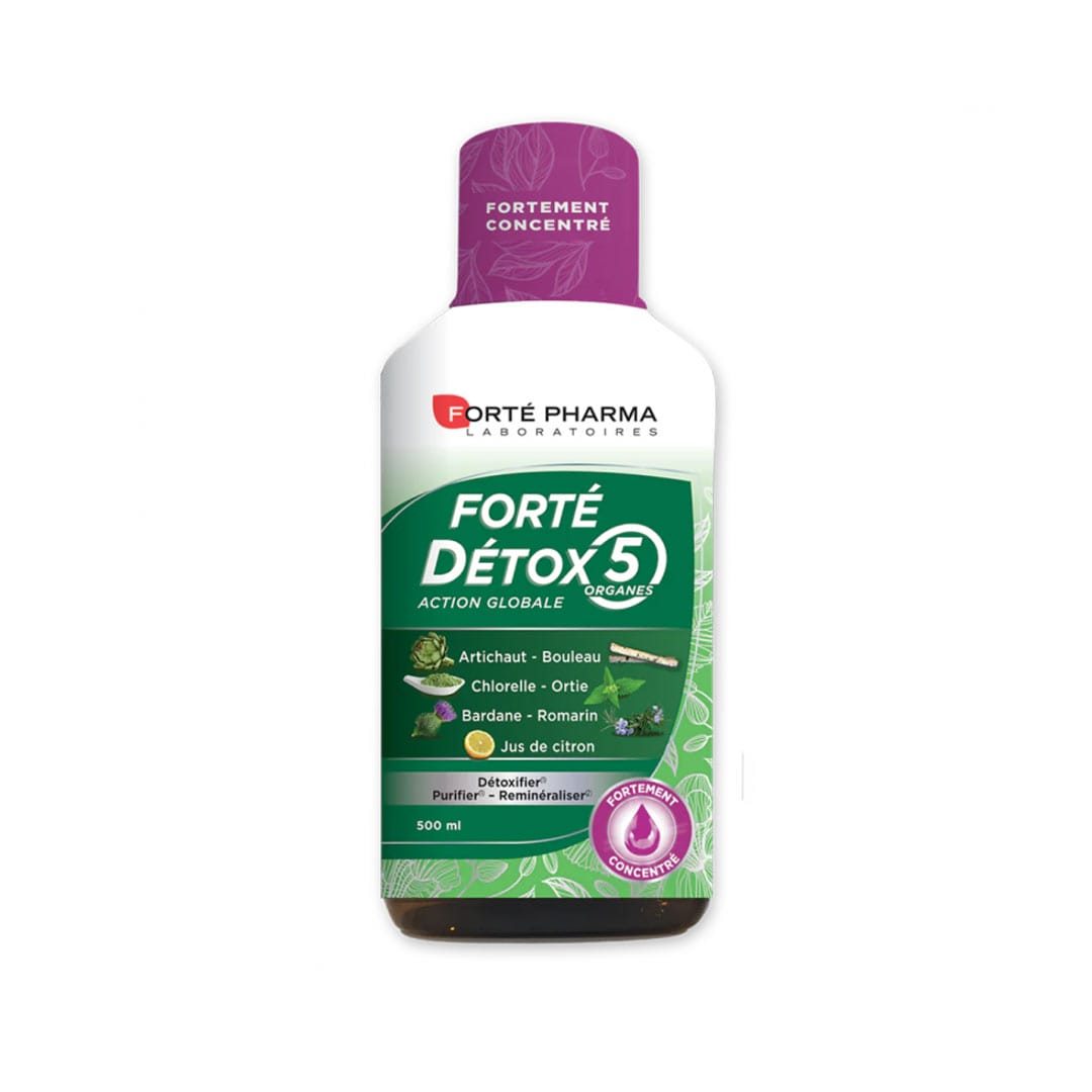 Forte Pharma Forté Détox 5 Organes 500ml , une boisson innovante conçue pour purifier et revitaliser votre corps en profondeur. Cette formule exclusive cible les 5 organes principaux impliqués dans l’élimination des toxines : foie, reins, intestins, poumons et peau. Grâce à ses extraits végétaux naturels, comme le pissenlit, le thé vert et la bardane, ainsi que des vitamines essentielles, cette boisson favorise une détoxification efficace tout en vous offrant une sensation de légèreté et d’énergie renouvelée.