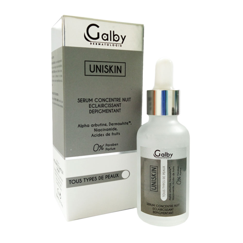 Galby uniskin sérum éclaircissant 50ml est un soin dépigmentant intensif pour le visage, le cou et le décolleté.