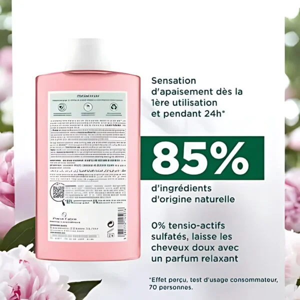 Ce Shampoing Apaisant anti-irritation et protecteur à la Pivoine médicinale Bio apporte dès la première utilisation et pendant 48 heures une sensation d’apaisement au cuir chevelu sensible, tout en respectant l’équilibre du cuir chevelu. Il contient un extrait de Pivoine de Chine Bio cultivée dans un écosystème préservé. Cet extrait contribue à son effet anti-irritant et apaisant. Avec sa formule biodégradable à 88 % d’ingrédients d’origine naturelle et au pH physiologique, ce shampoing apaisant lave en douceur et protège le cuir chevelu durablement. Il laisse les cheveux doux et délicatement parfumés.