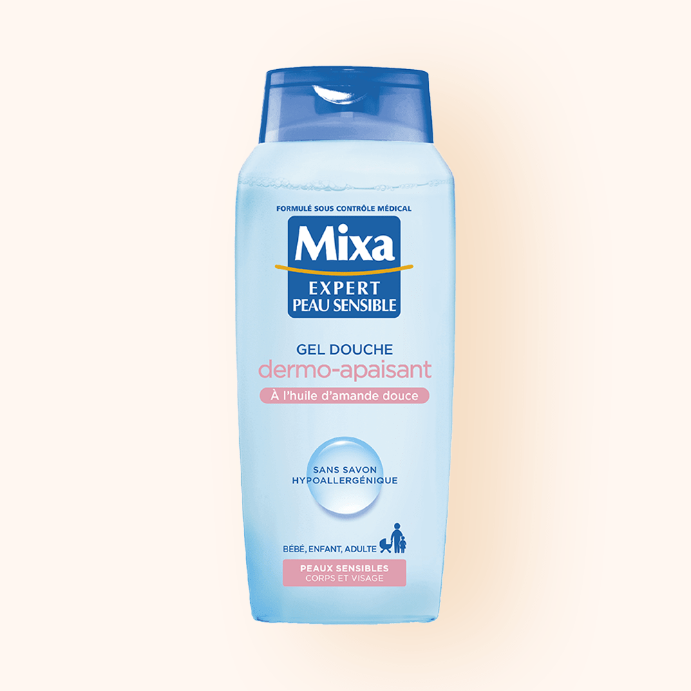 Le Gel Douche Dermo-Apaisant de chez Mixa apaise en un seul geste les peaux sensibles et lutte contre leur dessèchement. Apaisées, les peaux sensibles sont douces et confortables