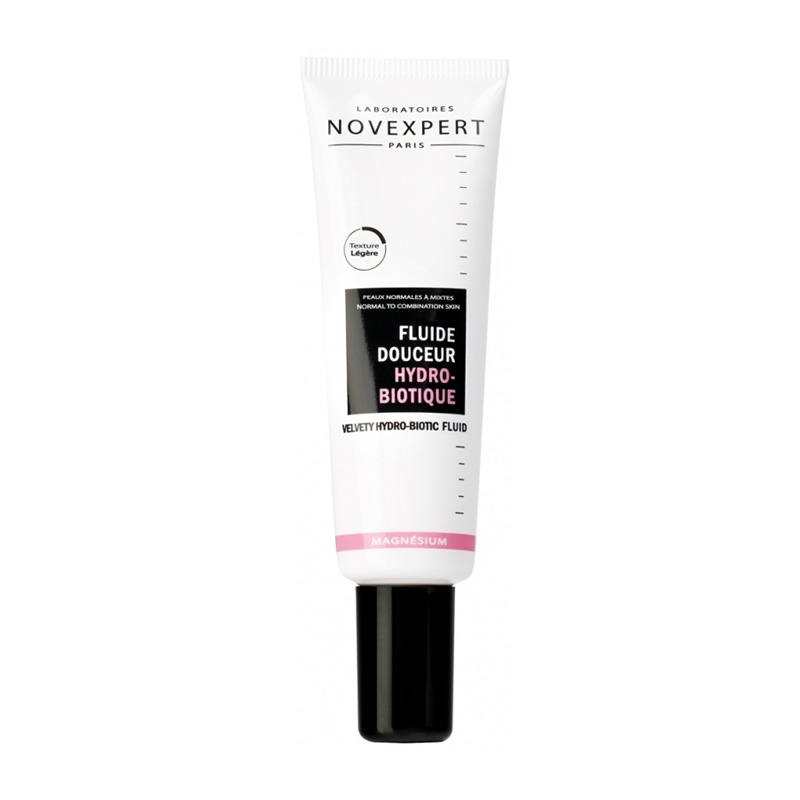 Novexpert Magnésium Fluide Douceur Hydro-Biotique Bio 30 ml est un soin 2 en 1 à la texture fluide, légère, hydratant intense et ultra-apaisant pour les peaux sensibles.