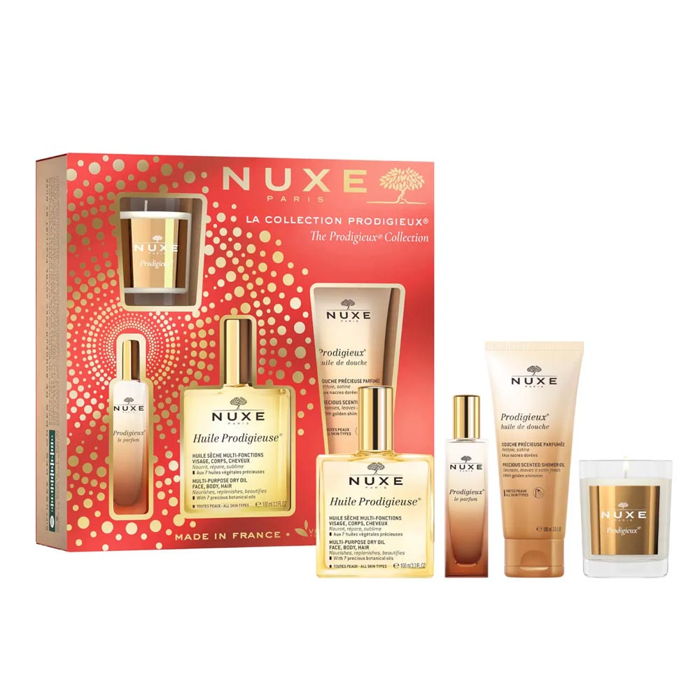 NUXE COFFRET LA COLLECTION PRODIGIEUX reprend dans chacun de ses soins le parfum mythique de l’huile Prodigieuse de beauté Nuxe.
