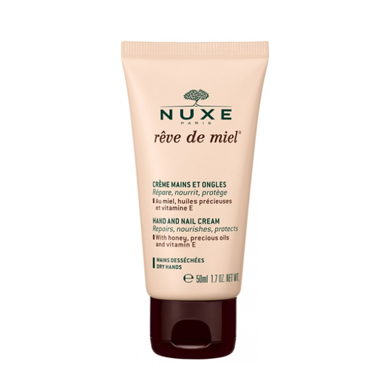 Nuxe Rêve de Miel Crème Mains et Ongles 50 ml est une crème qui répare, nourrit et protège la peau des mains desséchées. Sa texture soyeuse au doux parfum de miel enveloppe les mains de douceur sans effet gras.