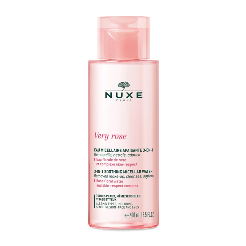 Nuxe Very rose Eau Micellaire Apaisante 3en1 est une eau micellaire sans rinçage à l’eau florale de rose qui démaquille, nettoie et adoucit tous types de peaux. Enrichie d’un complexe skin-respect 100% d’origine végétale, elle apaise la peau et respecte son équilibre.