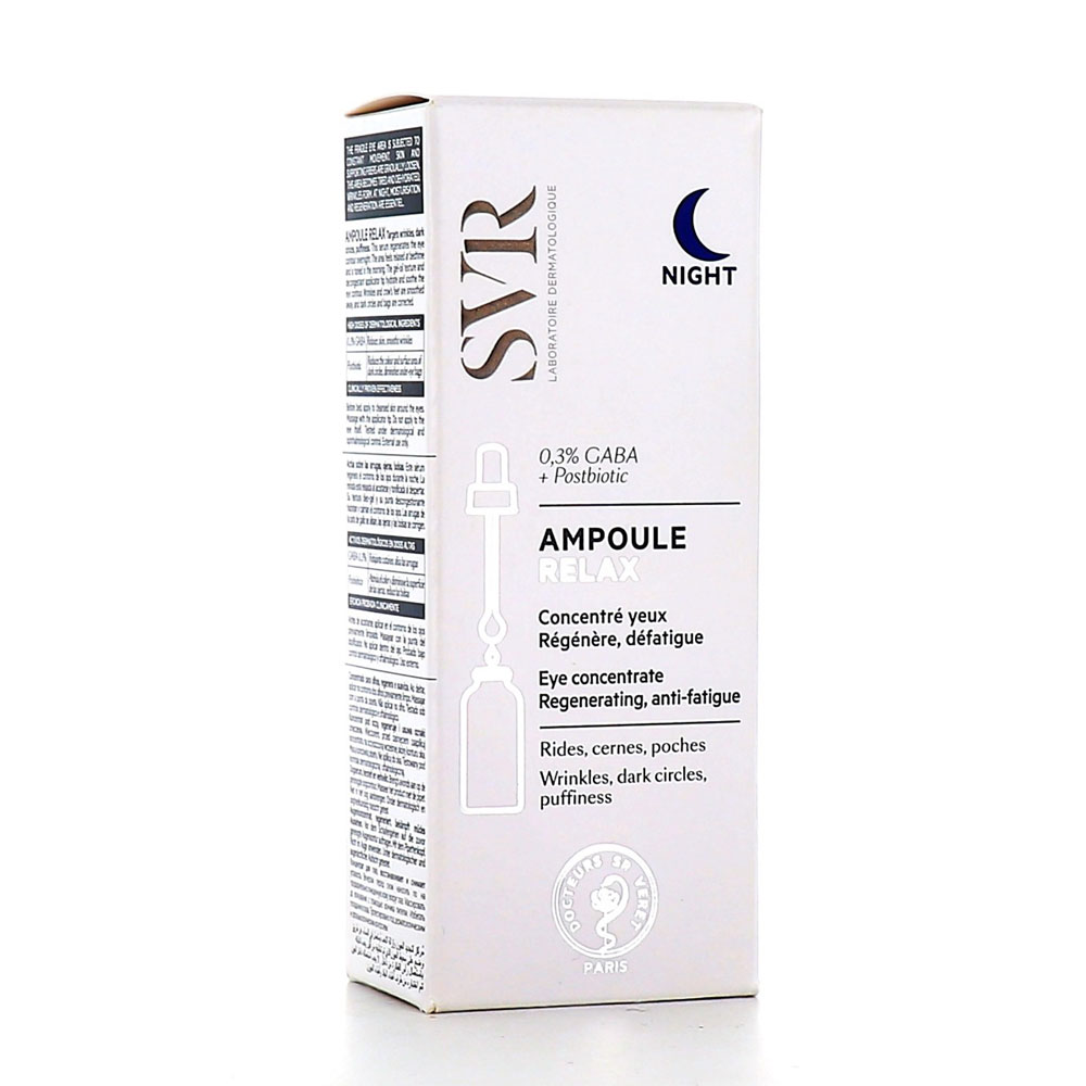 SVR Ampoule Relax Nuit 15 ml est un sérum qui régénère le contour des yeux pendant la nuit. Le regard est détendu au coucher et tonifié au réveil. Sa texture oléo-gel et son embout décongestionnant hydratent et apaisent le contour des yeux. Les rides de la patte d’oie sont lissés, les cernes et poches sont corrigées.