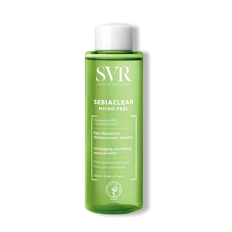 SVR Sebiaclear Micro-Peel 150 ml est une eau rénovatrice désincrustante lissante et hautement concentrée, qui purifie, désincruste les pores et élimine les imperfections sans dessécher la peau.