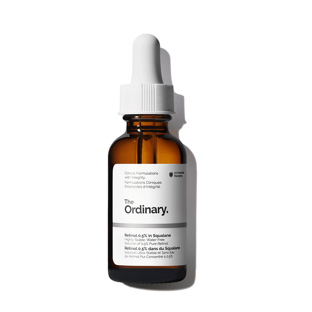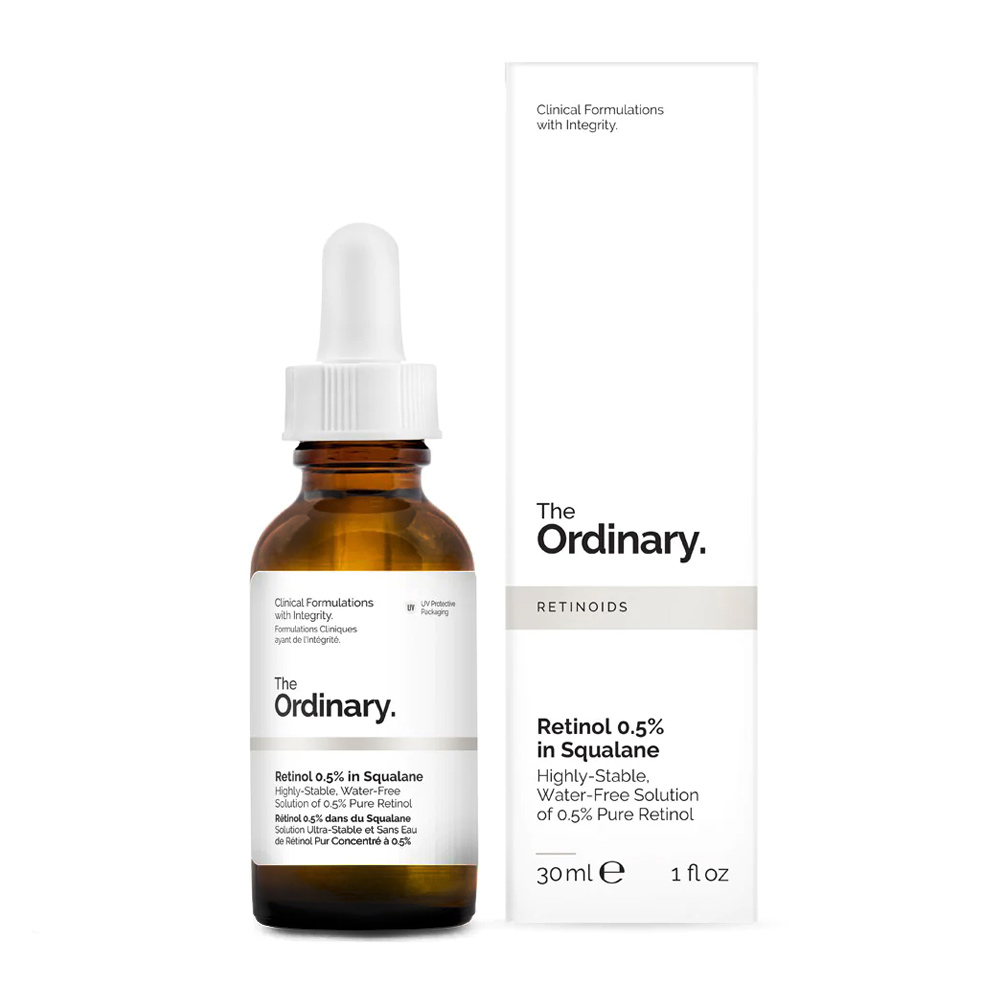 The Ordinary Retinol 0.5% in Squalane, la solution ultime pour les personnes qui souhaitent réduire l’apparence des rides et ridules, ainsi que l’irrégularité de la texture de la peau ! Notre formule sans eau contient 0,5 % de rétinol, un ingrédient puissant dont il est scientifiquement prouvé qu’il stimule la production de collagène et améliore l’élasticité de la peau.
