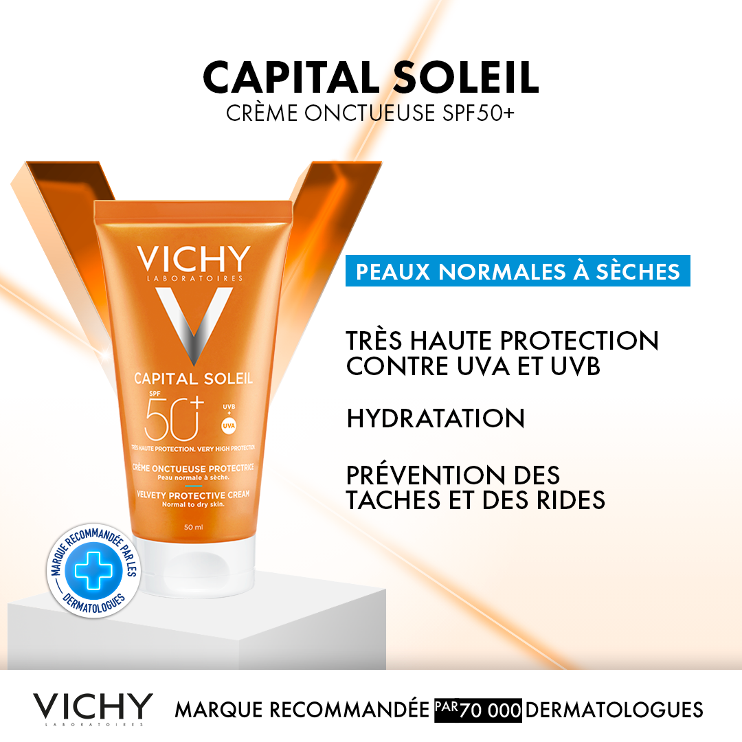 Appliquez le produit Vichy juste avant exposition, renouvelez fréquemment et généreusement surtout après avoir nagé, transpiré ou vous être essuyé.